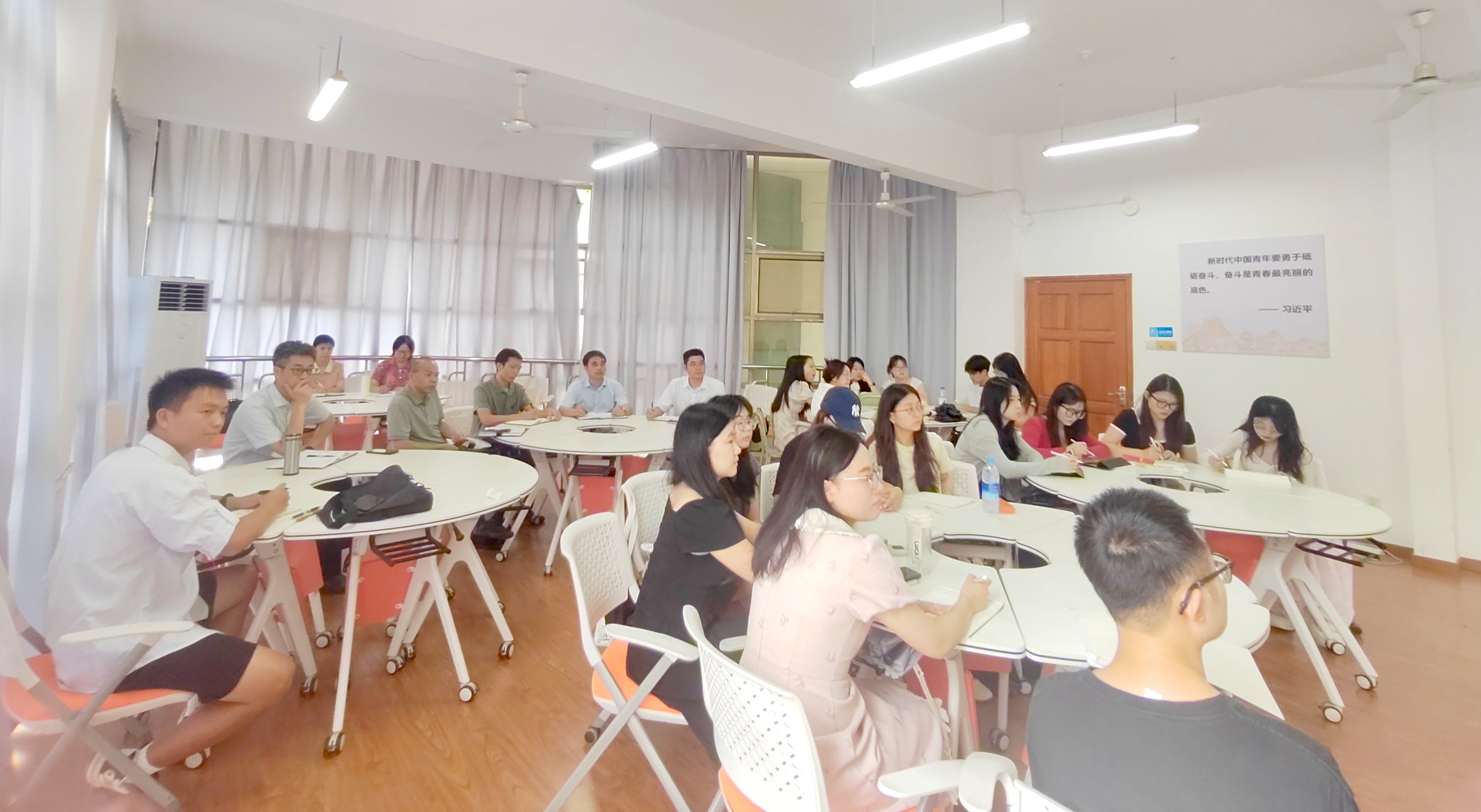 课上,副校长曾勇军与同学们一起认真听课,仔细记录??魏笥胧诳谓淌?、学院负责人就进一步创新教学理念、深化教学改革、赋能智慧教学、提升课堂教学质量等方面进行了探讨交流。